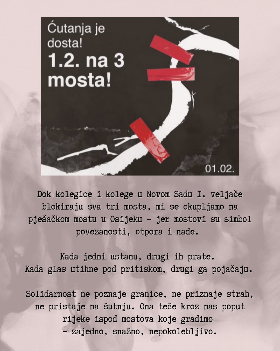 Vidimo se u subotu na pješačkom mostu. Jer nijedna borba za pravdu nikada ne bi smjela biti usamljena!